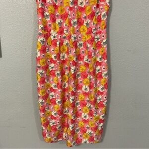 Boden Womens Silk Floral Dress Pink Yellow Short Sleeve Scoop Neck Pleated 6R