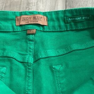 Kelly Green shorts with rolled cuffs. Perfect for casual wear. Features classic five-pocket design.