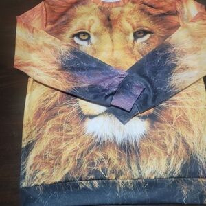 Stand out with this bold lion print sweater, perfect for adding a touch of wild style to your wardrobe.