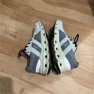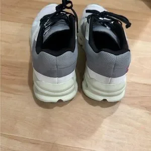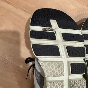 Gentle used pre owned size 8 Cloud Runners. I love these shoes and wore them a few times to work. There is a small tar spot on the bottom of one shoe. I’ve cleaned it off the best I could, but other than that they’re in great shape! Perfect for running, walking, and exercising at the gym!