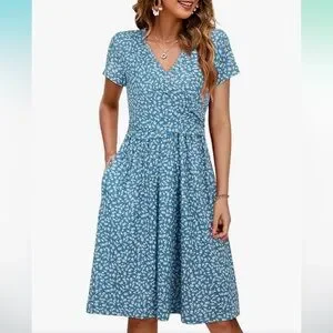 3-Ouges Amazon maternity dress size medium. Blue. Fabric is more of a cotton.
