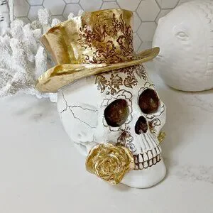 NEW! GOTH GLAM SKULL SKELETON ROSE & HAT