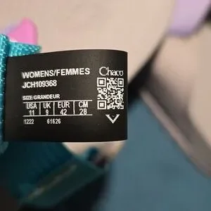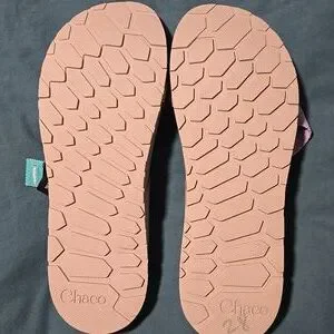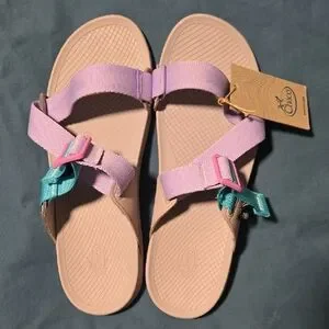 Chaco sandals with lilac and aqua straps. Ideal for everyday comfort.