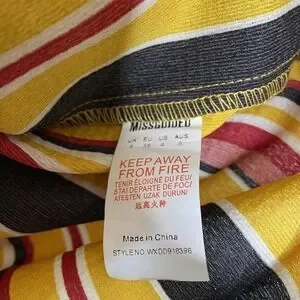 Adorable dress by Missguided new with tags. Vertical stripes in shades of yellow, black, red etc. create a slimming silhouette. Double buttons from waist down. Only one side of buttons is functional with one interior button at waist for added security. So cute! All measurements are approximate, taken flat and closed.