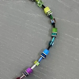 Elevate your style with this vibrant beaded necklace featuring a spectrum of colors and elegant silver accents. Perfect for adding a touch of flair to any outfit.