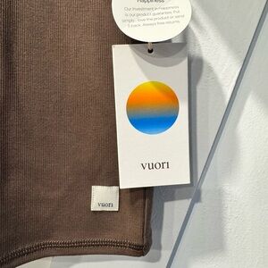 Soft and versatile tee from Vuori. Perfect for casual wear. Comfortable fit and cropped to waist line. Ribbed texture.