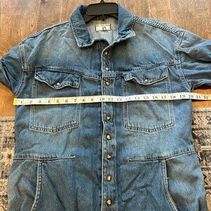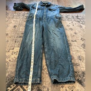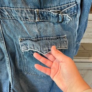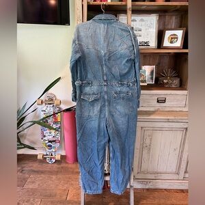 EUC We the Free women’s the Townes coveralls size medium. Perfect for the upcoming fall weather! Denim coveralls, long sleeved, pearl pockets and buttons, adjustable back waist, only flaw is one missing pearl top button on the back right pocket! Medium dark denim wash! Check photos for measurements in inches!