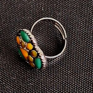 This elegant heart ring showcases beautiful turquoise and gold inlay, adding a touch of sophistication to any outfit.