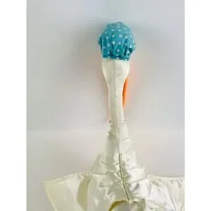Nice Condition- Made of a soft silky material- Vintage minor signs of wear -a few yellow spots- See photos & tags. Does not sit on its own needs to be propped up. About 14” tall