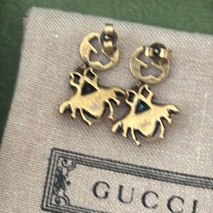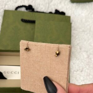 Chic Gucci earrings with a bee motif. Gold and bronze tones. Rhinestones. Adds luxury to any look.