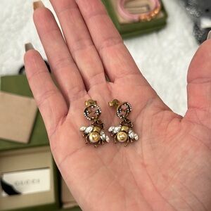 NWT AUTH Gucci Gold and Rhinestone Bee Earrings