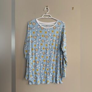 V-neckline, smocking at bust, tiered bottom piecing, effortless pull-on style