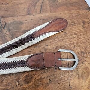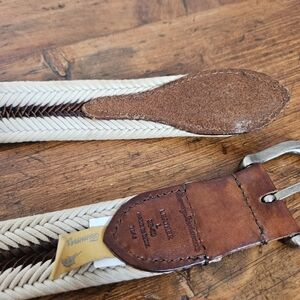 Tommy Bahama Brown Leather and Cream Cord Woven Belt Mens L 38-40