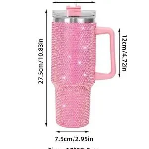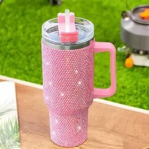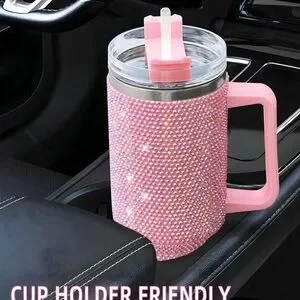 Pink Rhinestone Tumbler Stainless Steel Style 40oz with Handle New
