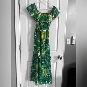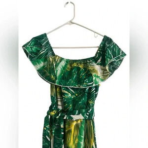 Tropical Green Off-Shoulder Maxi Dress