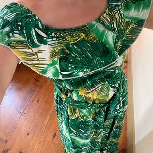 Embrace summer vibes with this stunning tropical green off-shoulder maxi dress. Perfect for beach outings and casual gatherings ๐ด๐๐