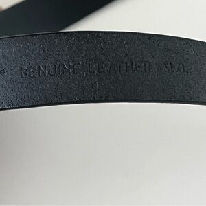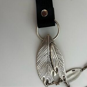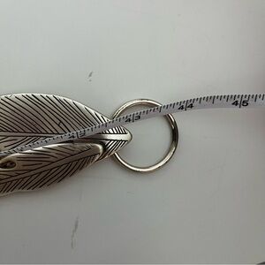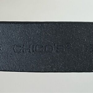 CHICO’S Silver heavy metal embossed atrsy leaf chain and black adjustable slide black leather belt