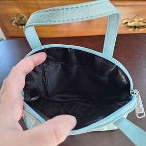 Cute mini bag featuring Stitch design. Light blue color. Perfect for Disney fans. Great condition. Has rings for a crossbody strap, though I don't have one for it.