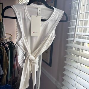 Chic and versatile white tank top from Lululemon. Features a stylish back tie detail.