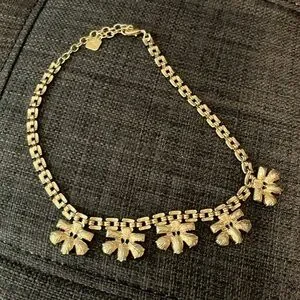 Max and Zoe gold and crystal rhinestone necklace. Vintage art deco inspired. Really beautiful in person. Statement piece. Rhinestones catch the light. Simple and elegant. Quality well made costume piece