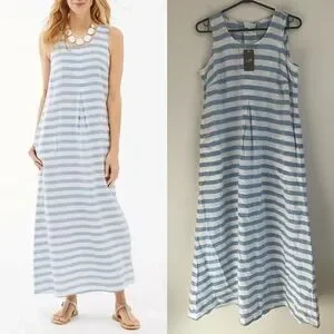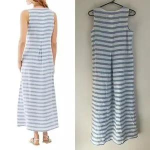 Sleeveless maxi dress with blue and white stripes. Relaxed fit. Perfect for casual outings. Worn three times…