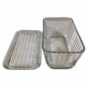 Anchor Hocking 1932 Vintage Design 8.5” Ribbed Clear Glass Fridge Dish with Lid