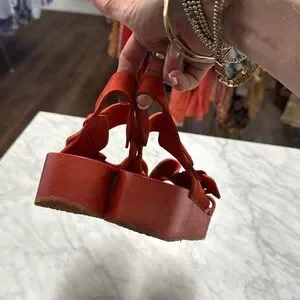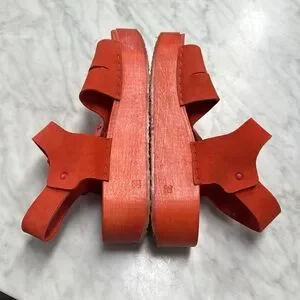 Bryr Studio Jesse Leather Platform Wooden Sandal Orange-Red Size 39/9