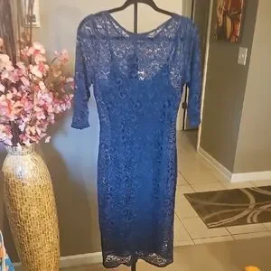 The Beatrice dress is both beautiful and unique; with a solid colour slip underneath an elegant lace dress - this style is unlike any other at Lady V! With a silhouette that is sure to be flattering, this dress has a slightly fitted waist before falling straight to just below the knee. Three quarter length sleeves compliment the style - giving a sophisticated and demure look.