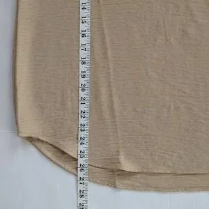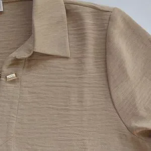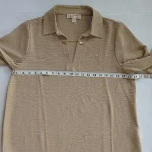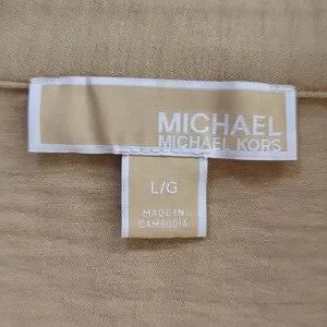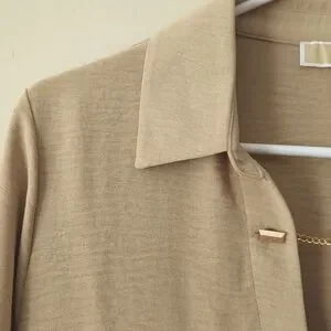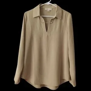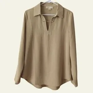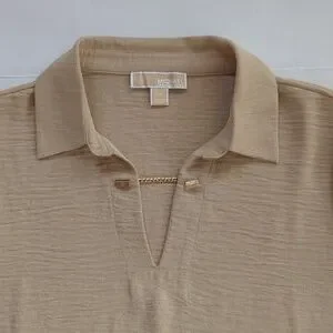 Michael Michael Kors Chain Accent Collared V-Neck Long Sleeve Blouse LARGE Tan