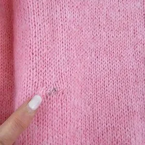 Style and Materials: Long Sleeves. Pastel pink tones. No fabric Content. Feels like wool /nylon blend. Vintage Hand Knit and beaded sweater.