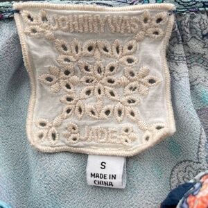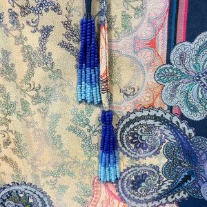 JOHNNY WAS JADE Women’s Size Small Blue Ombre Beaded Tassel Tie Print Tunic FLAW