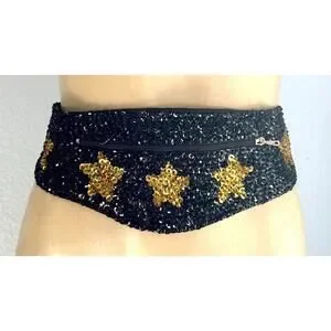 Sequin Cummerbund Fashion Belt Black with Gold Stars
