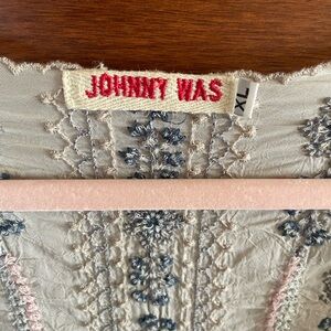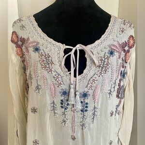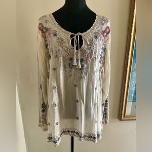 Absolutely gorgeous top with detailed embroidery. Crafted by Johnny Was in beautiful, light semi sheer fabric. Excellent condition.Perfect for any occasion.