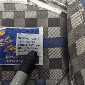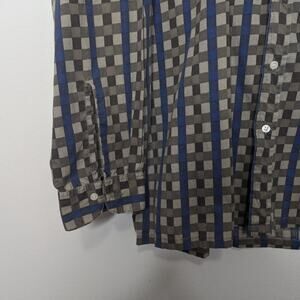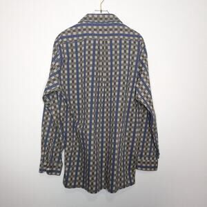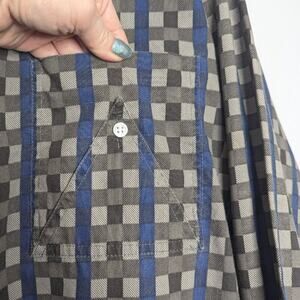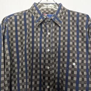 Vintage 70's Gray Blue Check Plaid Long Sleeve Button Up Shirt Front Pocket L
