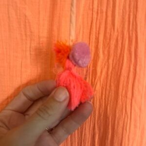 Has been washed and worn. Super fun color and great for summer. Shows wear. One tassel is missing a ball, not noticeable when wearing