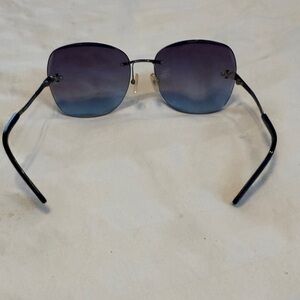 Tory Burch, grey frameless beveled lens, silver arms, 62mm lens width, 17mm bridge width, 125 mm temple length, silver Tory Burch logo on lens , nose pads , rubbed damage on lenses (pic given)