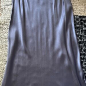 This elegant silvery dark gray satin midi skirt offers a sleek and sophisticated look. Perfect for any occasion, it pairs beautifully with a variety of tops and accessories. Looks beautiful with the light grey Design History cardigan I have listed in my closet ❤️