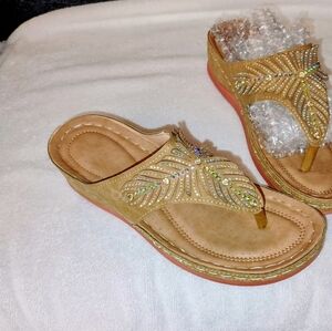 Women's Beaded Thong Sandals Tan Size 9/40