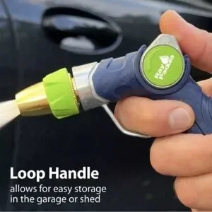 The nozzle comes with a connector, aerator, and diverter, and features corrosion-resistant and anti-freeze protection, along with non-slip handles and an on/off switch. It also has a lock for easy use and a female 1/2 in threaded connection. This high-quality nozzle is designed for durability and efficiency, making it an essential tool for any gardener.