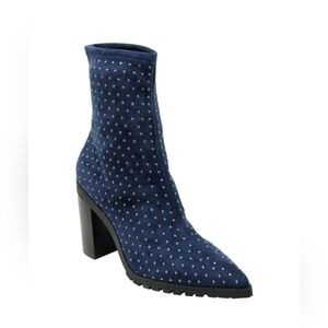 Pull on Boot with stretchy Shaft and pointy toe. Studded all around boot.