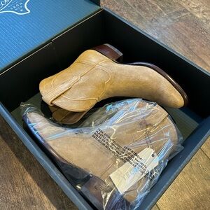 Elegant light brown suede boots by Tecovas. Ideal for a western style.