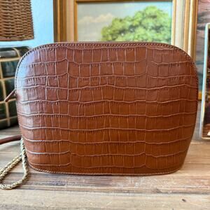 Women's Sezane Victor Brown Croc Print Leather Bag with Brass Leather Strap NEW