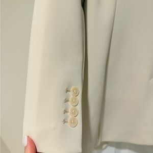 Chic cream blazer with a oversized fit. Features notched lapels and front pockets. Ideal for professional or casual wear.