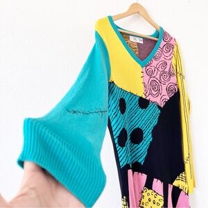 Disney The Nightmare Before Christmas Sally Long Sleeve Knit Sweater Dress size L. Knit, v-neck, long sleeve, unlined. No sign of flaws noted. Comes from smoke free home.