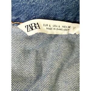 Zara Sleeveless Collard Button Denim Short Jean Shorts Romper Pockets L Dark Wash Blue