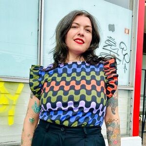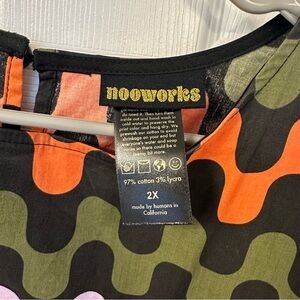 Nooworks cotton poplin ruffle sleeve top in the discontinued Ditto print. Size 2XL and runs smaller than their jersey shirts. Bought NWT and unfortunately it doesn’t fit me well.