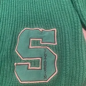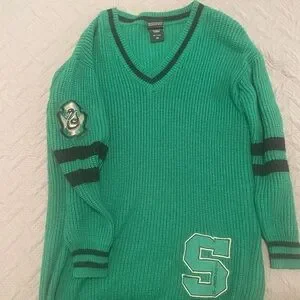 Slytherin Varsity sweater dress featuring a v-neckline and sewn-on patches. Size small. Worn twice.