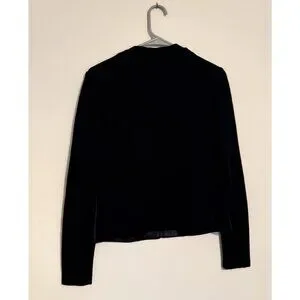 Excellent condition. Classiques Entier Women's Black Leather Front and Wool Zip Up jacket Size XS. Length 22in, pit to pit 17in, sleeve length 25in.