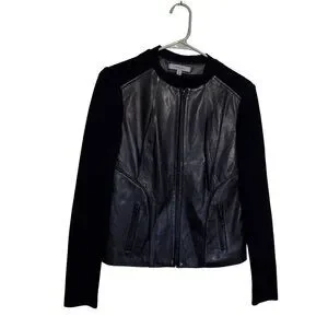 Classiques Entier Women's Black Leather Front and Wool Zip Up jacket Size XS