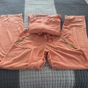 Juicy Couture Embroidered Peach Hoodie Sweatsuit